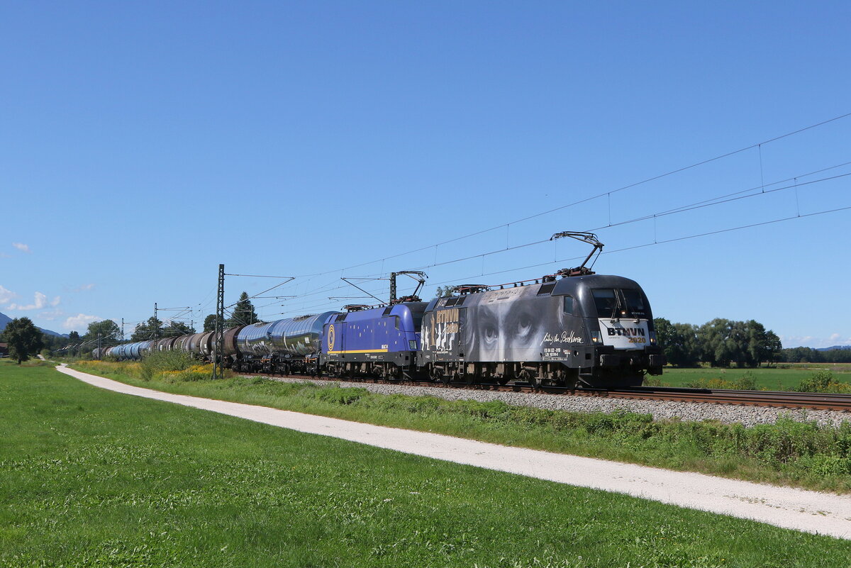 182 522 war mit dem "Walter-Zug" am 9. Dezember 2016 bei Übersee in Richtung Salzburg unterwegs.
