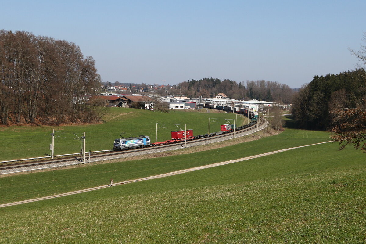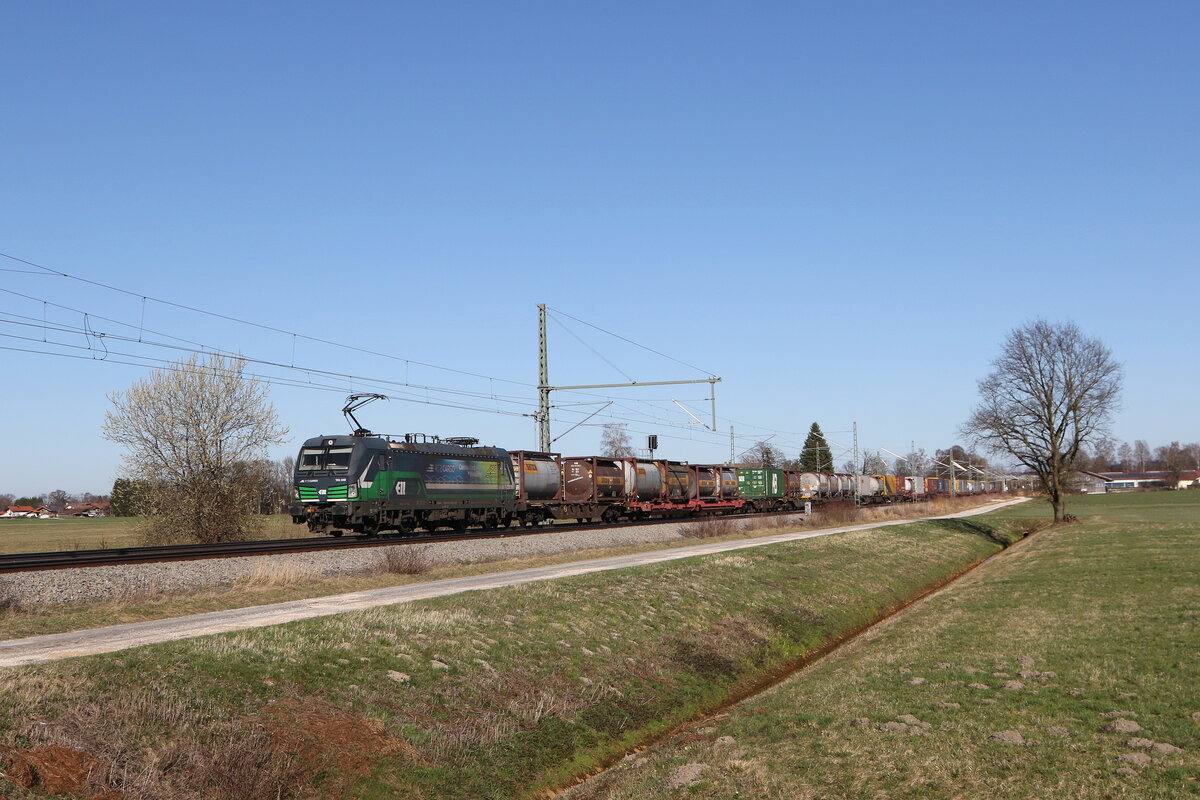 193 605-3 mit dem "AKE-Rheingold" am 20. Dezember 2015 aus Salzburg kommend bei Übersee am Chiemsee.