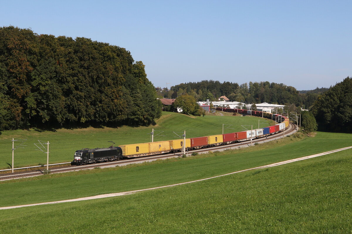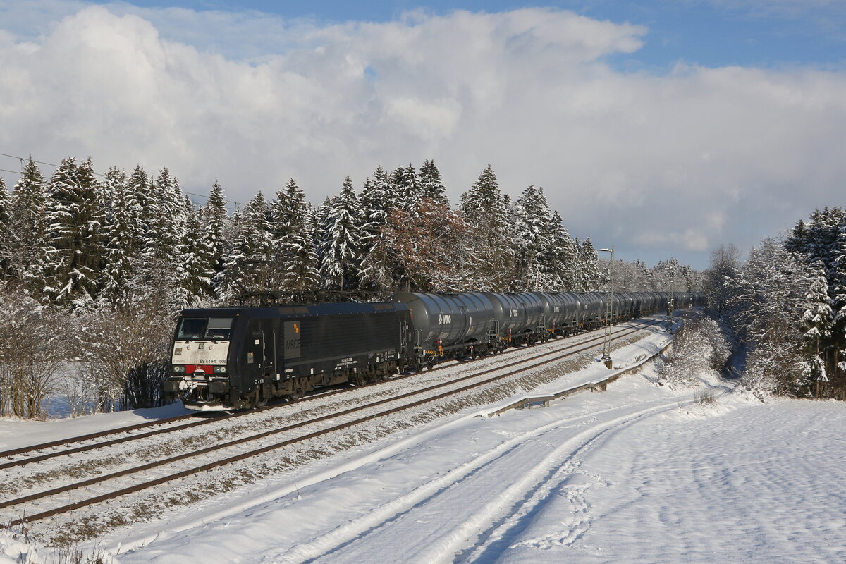 193 650 mit dem "Ekol" aus Salzburg kommend am 14. Februar 2022 bei Grabenstätt im Chiemgau.