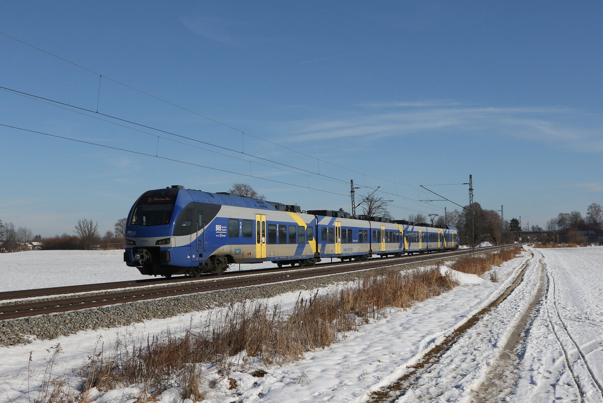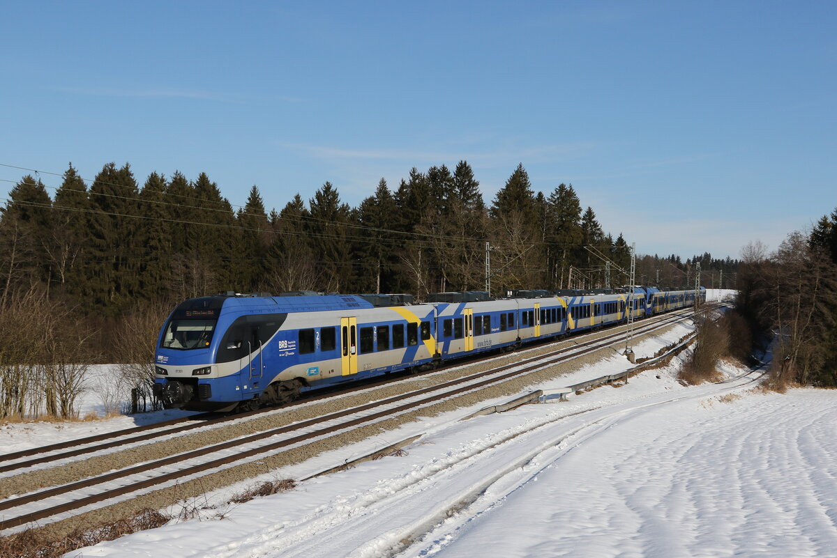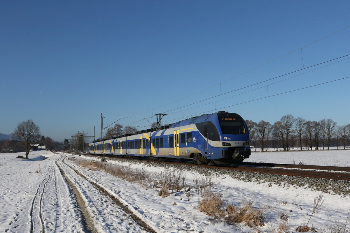 ET 302 auf dem Weg von Salzburg nach München. Aufgenommen am 15. November 2015 kurz nach Übersee am Chiemsee.