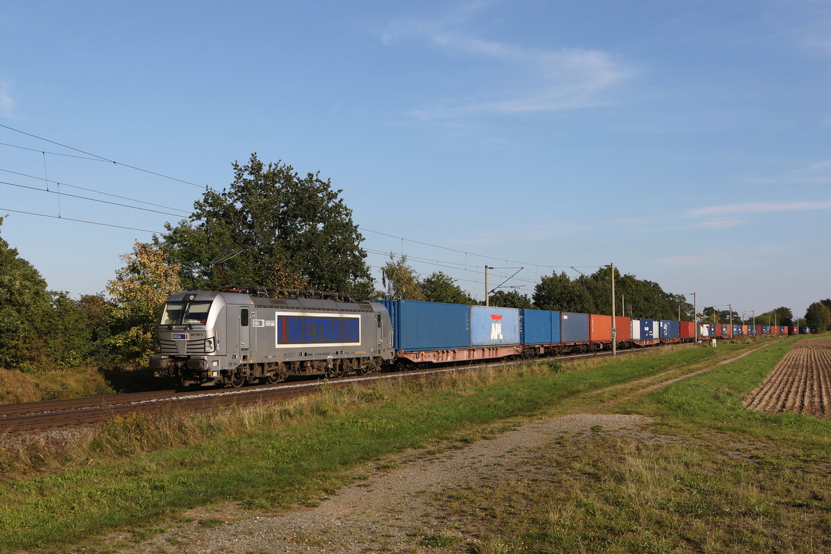 386 003 mit einem Containerzug aus Salzburg kommend am 8. Mai 2018 bei Weisham.