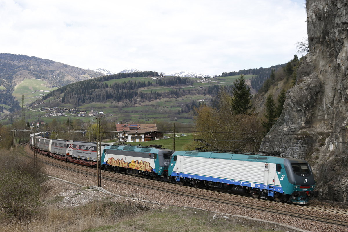 412 006 und 412 020 mit einem Walter-KLV am 7. April 2017 bei Freienfeld in Südtirol.