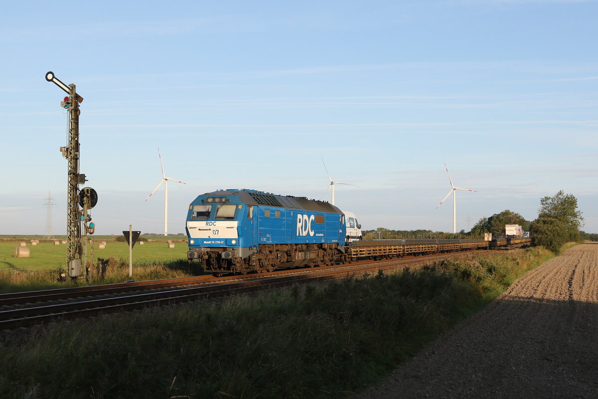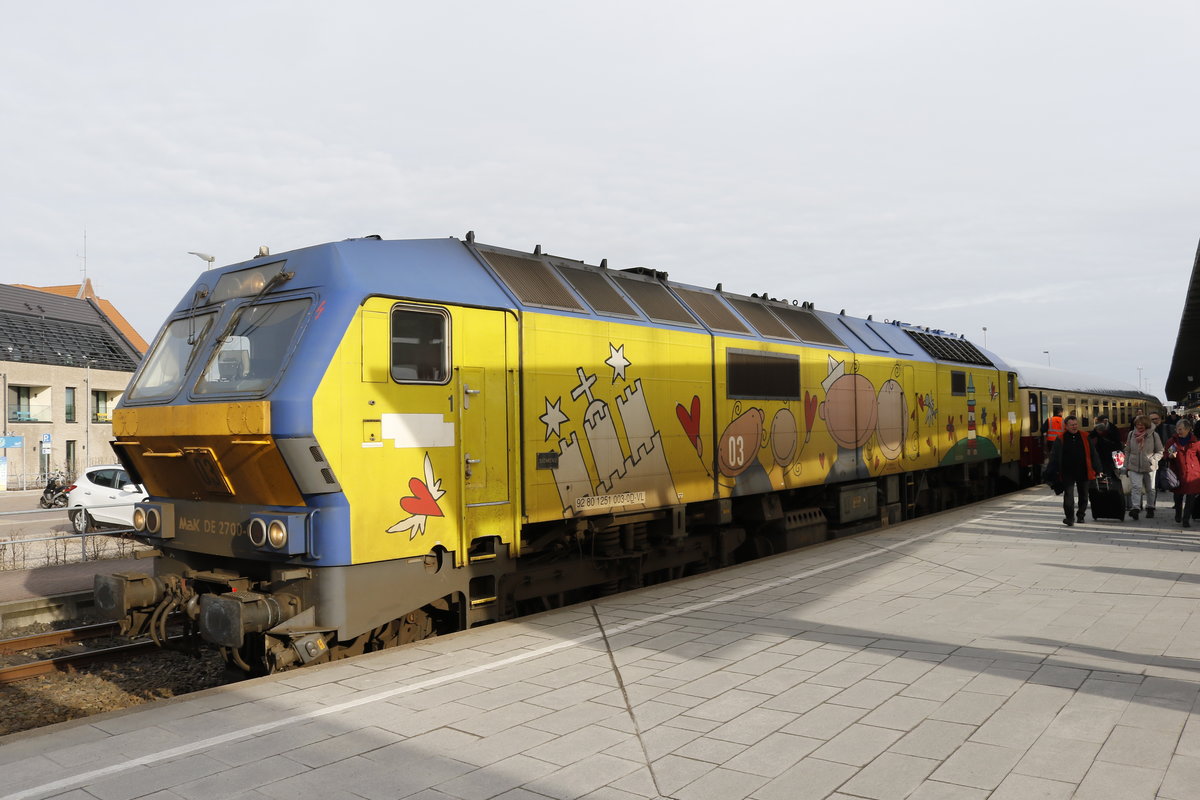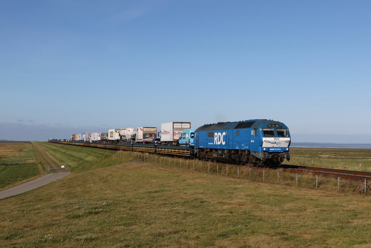 MAK DE 2700-02 mit einem Autozug am 13. August 2017 bei Klanxbüll.