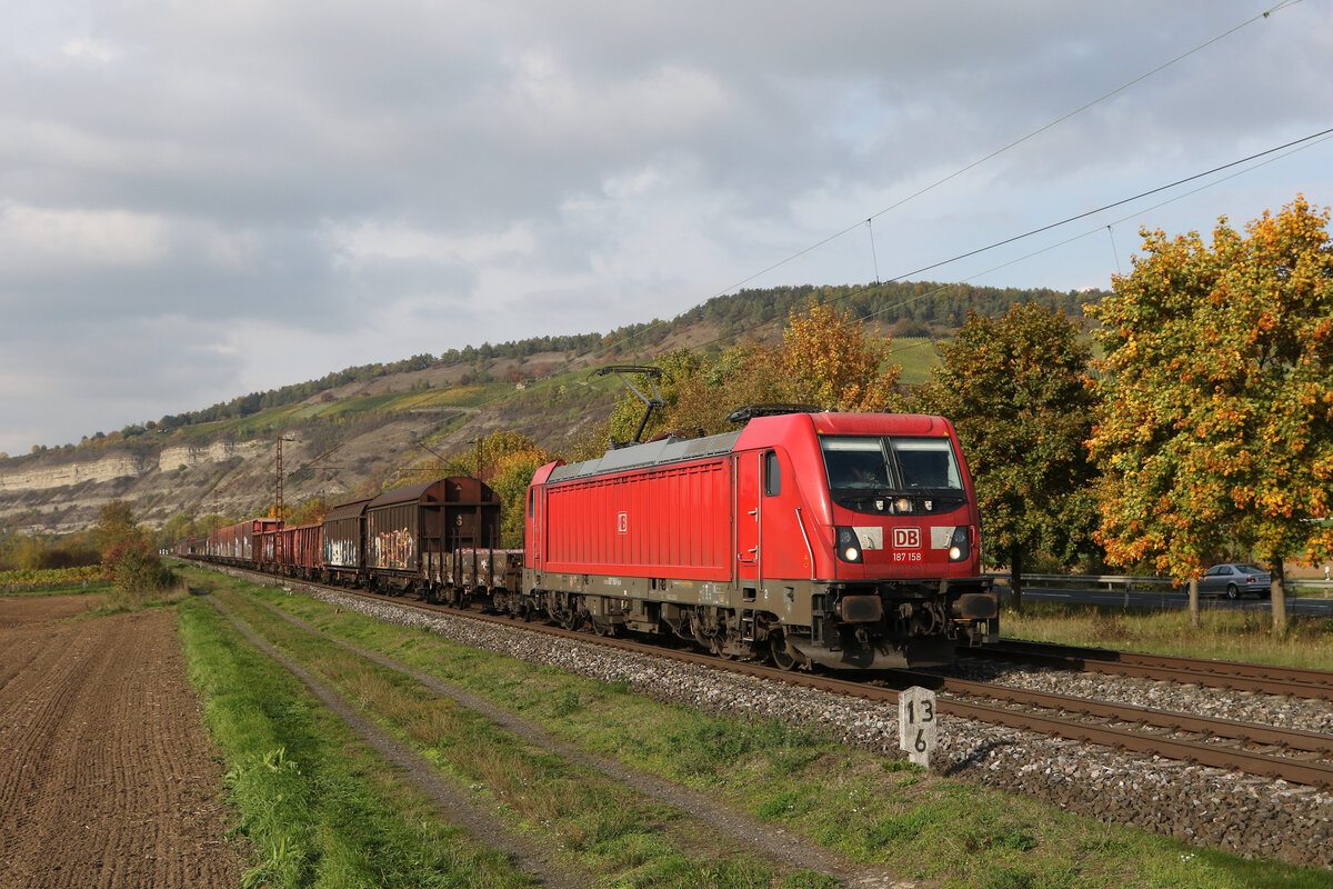 187 147 mit einem gemischten Güterzug am 26. Juni 2020 bei Dörverden.