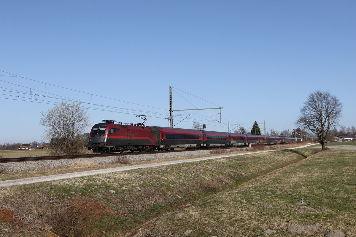 1116 080 mit einem leeren Autozug am 31. Dezember 2021 bei Grabenstätt im Chiemgau.