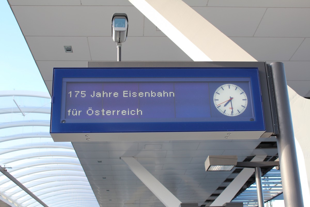 Anzeige anläßlich der Feierlichkeiten zu "175 Jahre Eisenbahn in Österreich". Aufgenommen am 13. Juli 2012 in Salzburg.