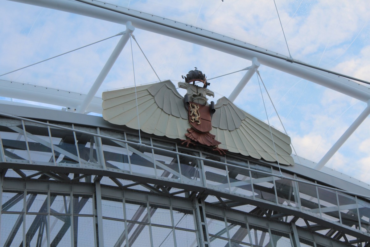 Der  Doppeladler  an der Decke des neuen Dachs des  Salzburger Hauptbahnhofs  am 13. Juli 2012.