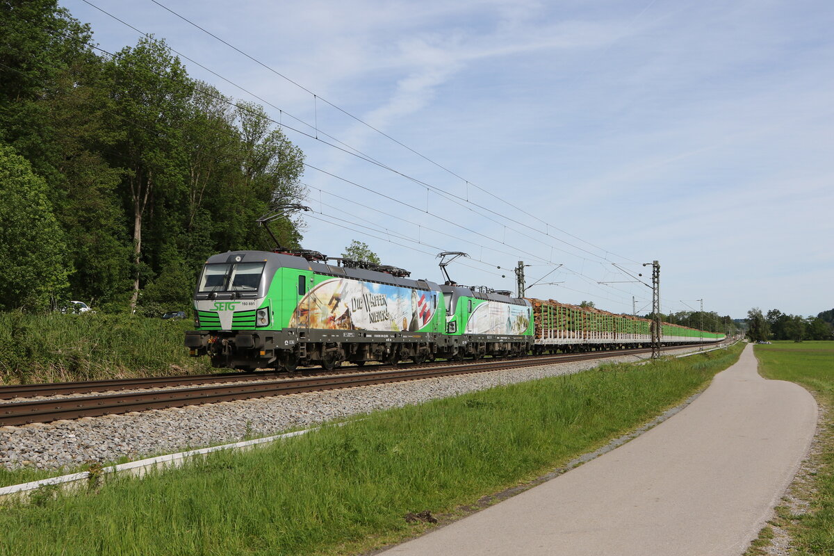 193 736 "Marco Polo" mit einem Kesselwagenzug aus München kommend am 25. Februar 2026 bei Übersee am Chiemsee.