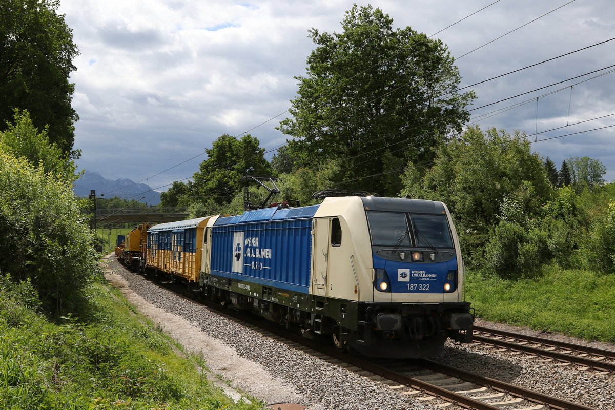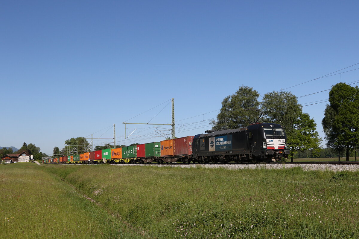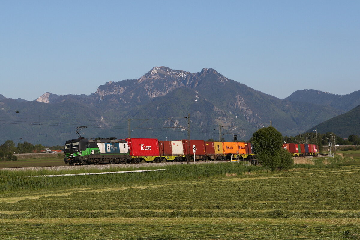 193 236 mit einem Containerzug am 19. Mai 2017 auf der "Mariaorter Brücke" bei Regensburg.
