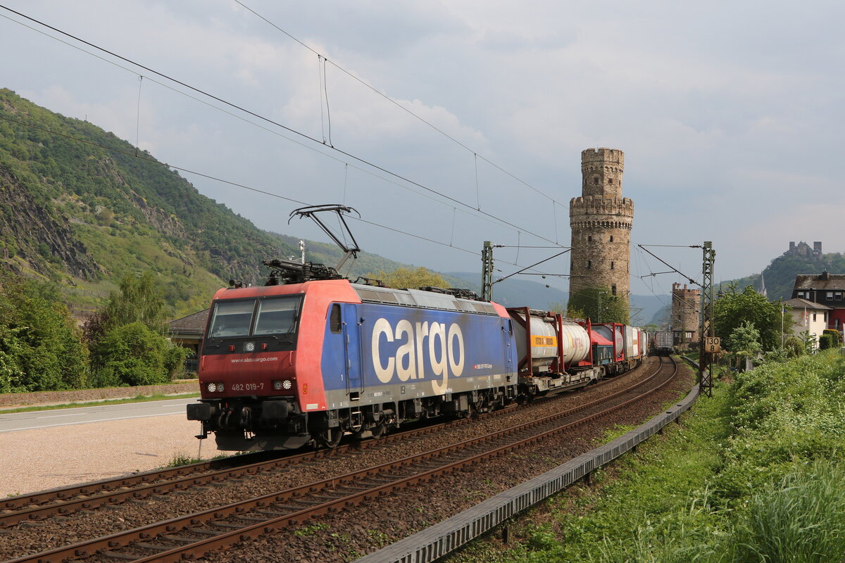 193 534 der "SBB Cargo" mit einem Kesselwagenzug am 21. Juli 2021 bei Assmannshausen am Rhein.